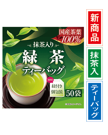 ![]() | 抹茶入り緑茶TB50袋 国産原料のみを使用したまろやかな味わいの抹茶入り緑茶です。飲みたい時に必要な分だけ使用し保存できる、個包装タイプの紐付きティーバッグです。